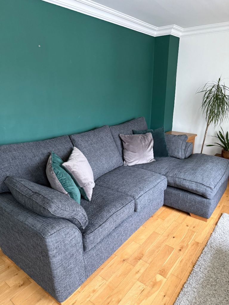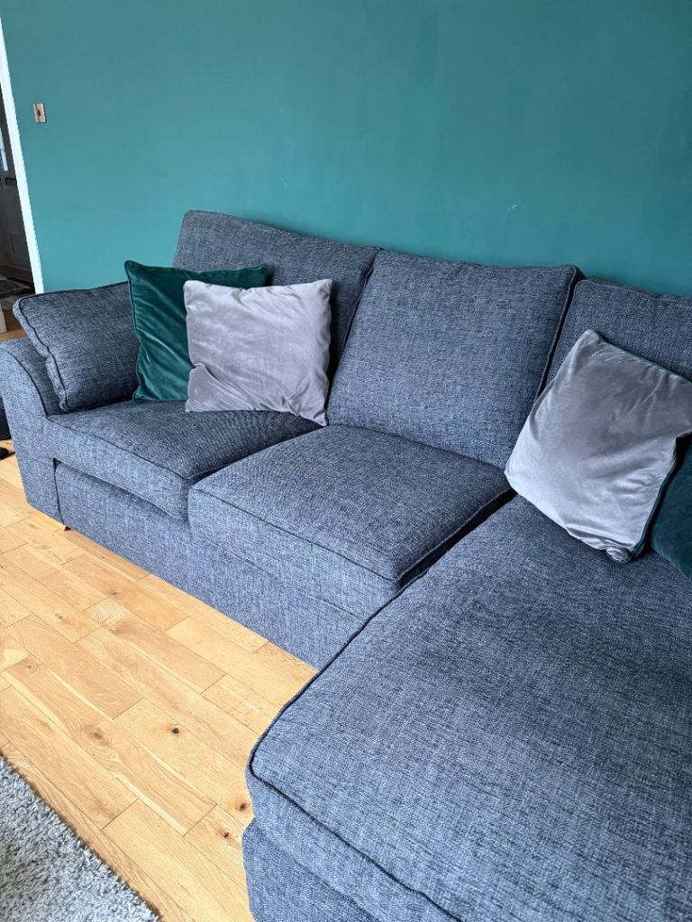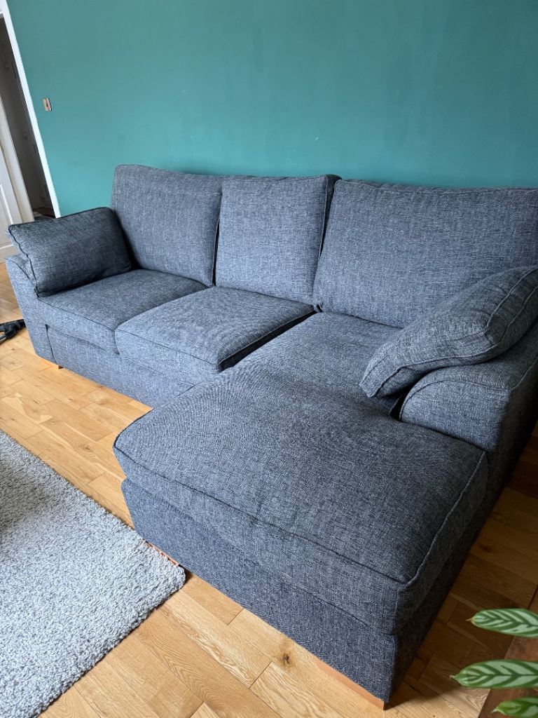 Lovely NEXT corner sofa with a chaise lounge section, perfect for relaxing.