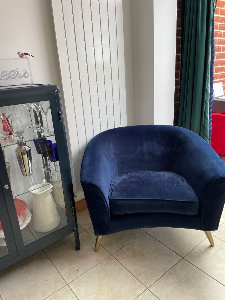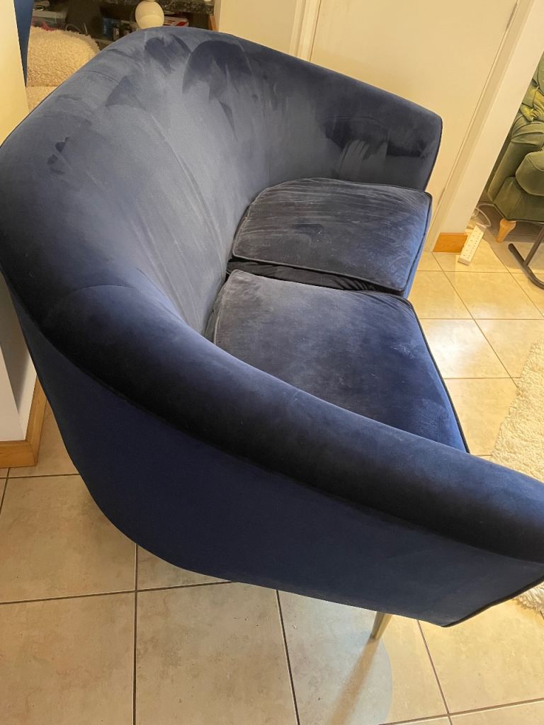 Next Navy Velvet 2 seater sofa and chair