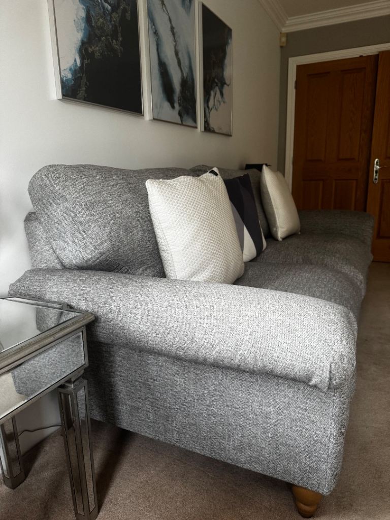The sofa is immaculate with no signs of wear, tear or spillages. It’s under three years old and has been very well looked after. Selling only due to re‑decorating and a change of colour scheme.