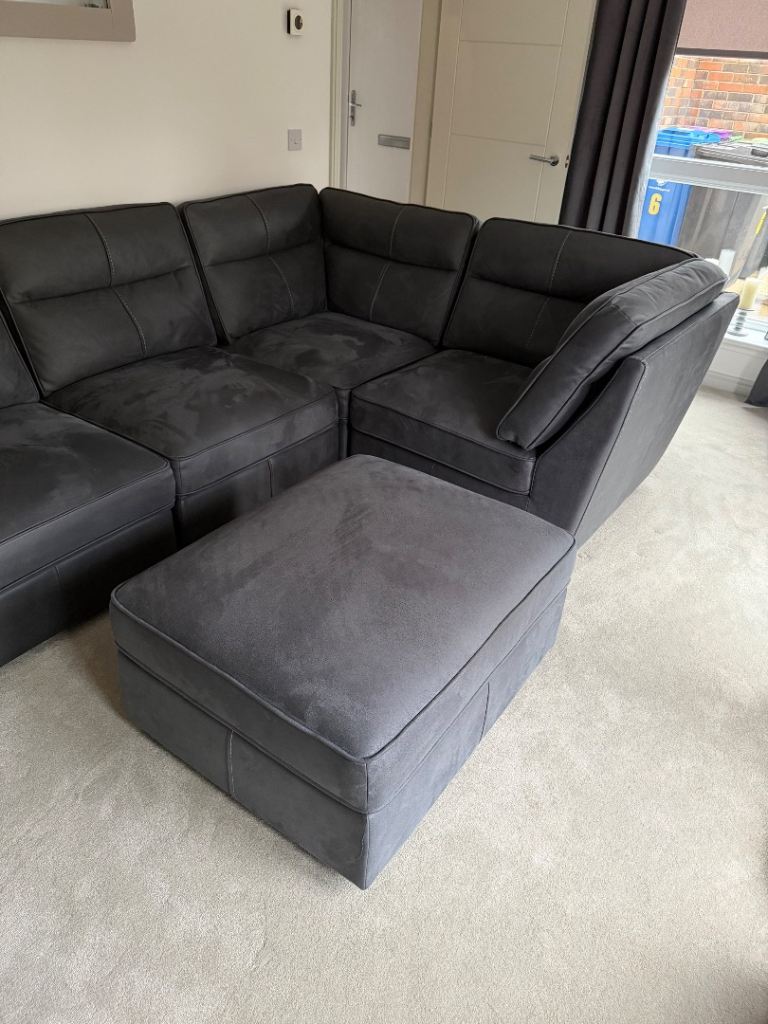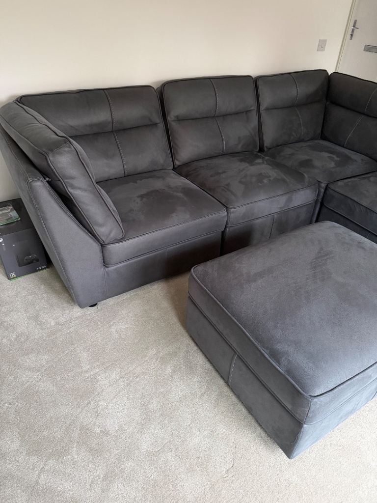 18 months old oak furniture land grey fabric zodiac sofa like new not a mark on it