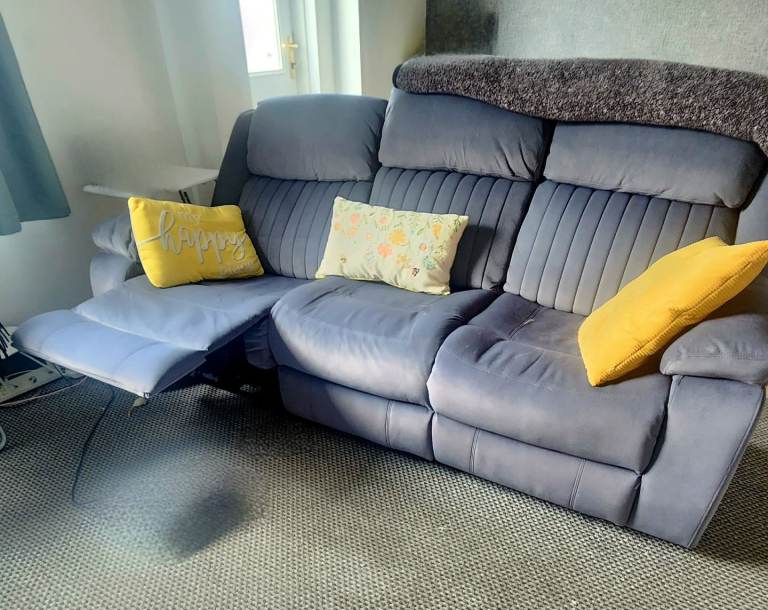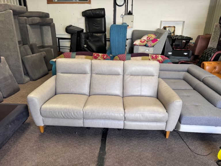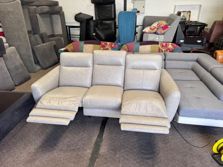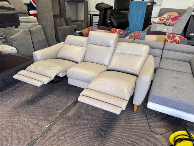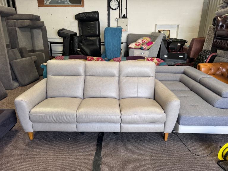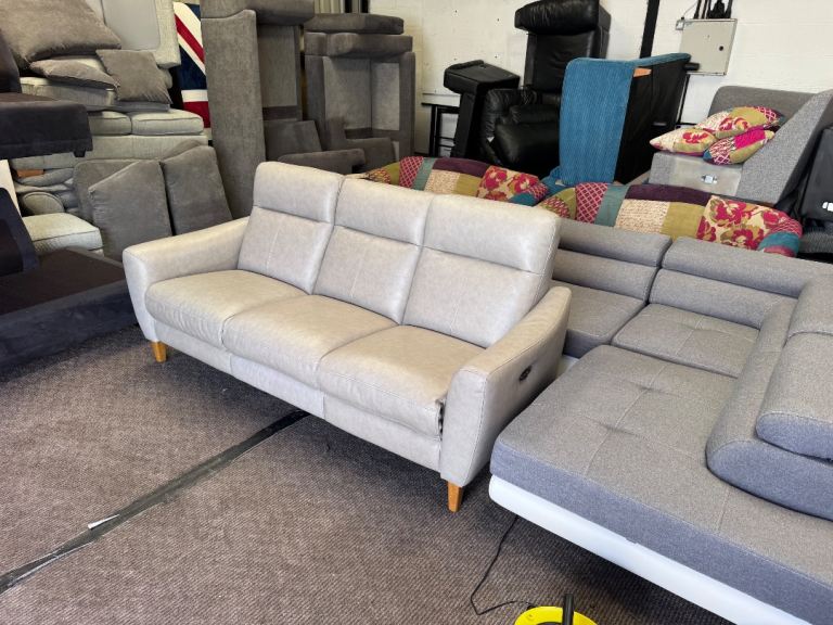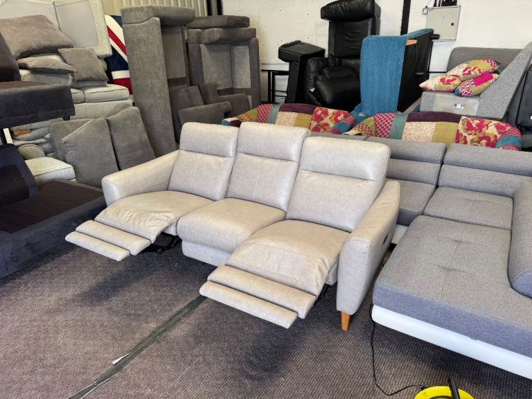 Oak Furnitureland grey leather power recliner 3 seater sofa Delivery available