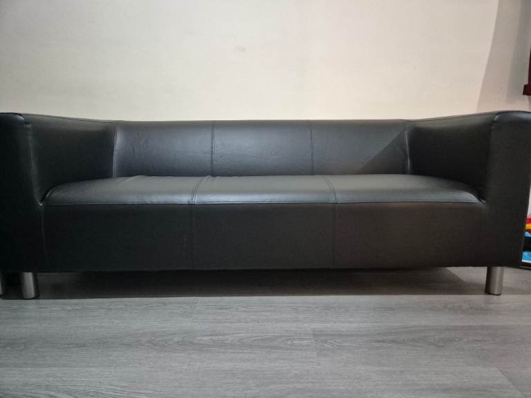 175cm x 85 cm of a pair 3 seater black leather sofa in great condition.