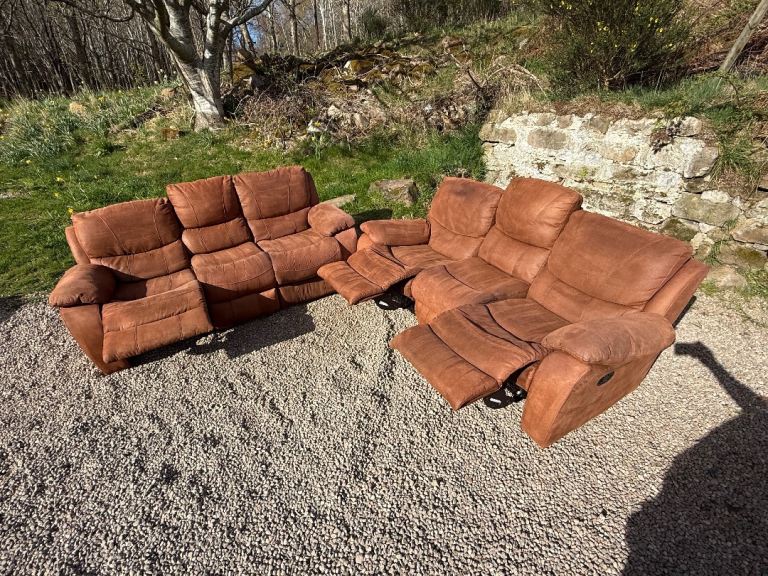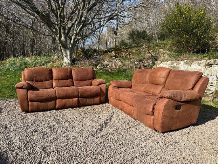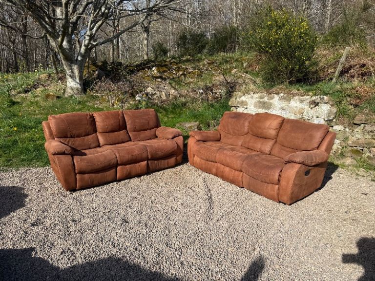Pair Of Three Seater Manual Reclining Sofas. Delivery is available at an extra cost.