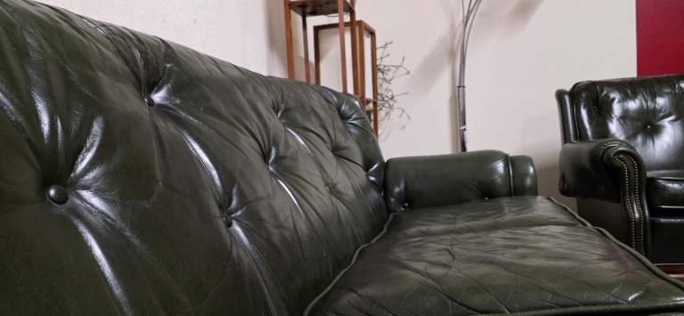 PEGASUS®️ Green Chesterfield Genuine Leather 3 Seater Sofa + 2 Armchairs Studded