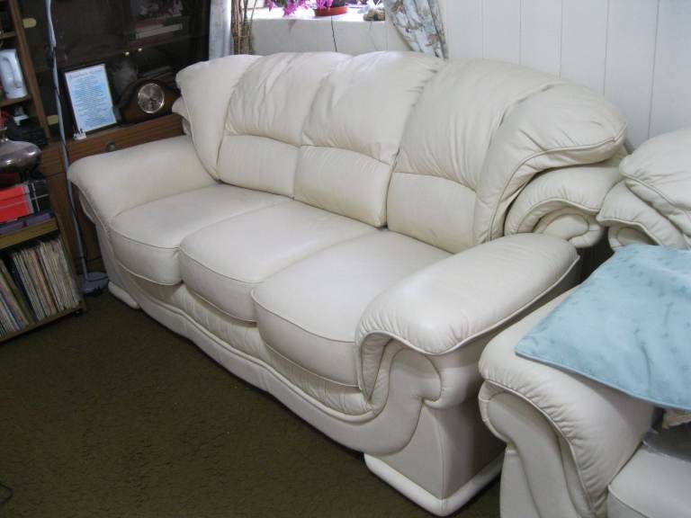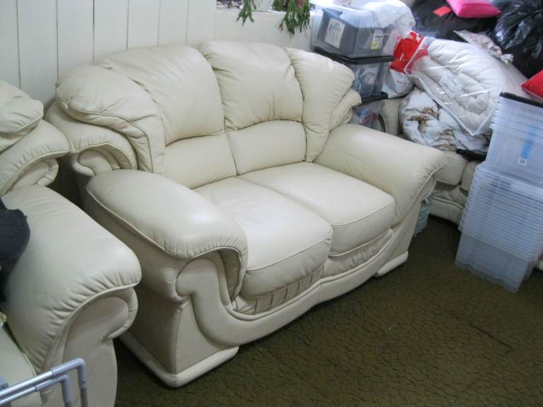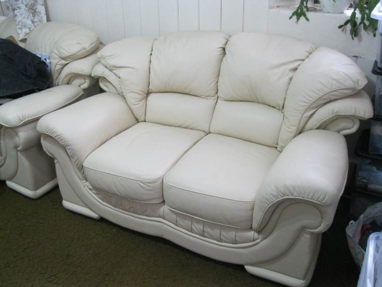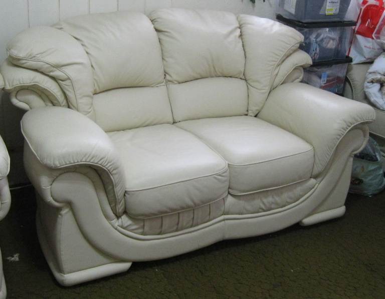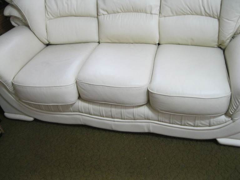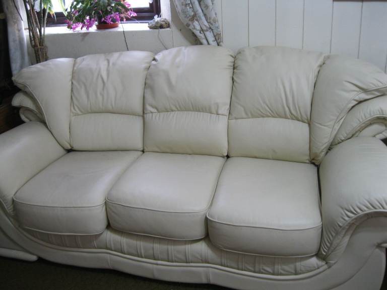 QUALITY CREAM ITALIAN LEATHER 3 SEATER SOFA COUCH SETTEE GUNNISLAKE PL18 9NA