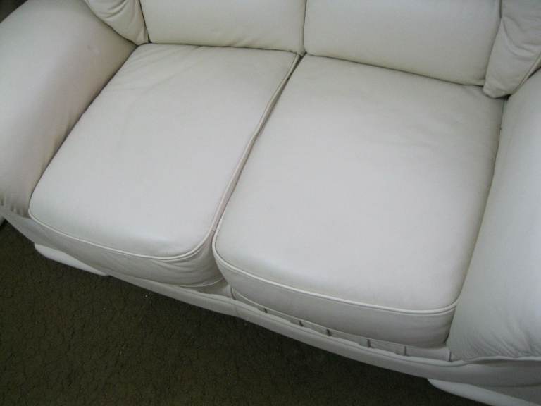 CREAM ITALIAN LEATHER 3 SEATER SOFA.
