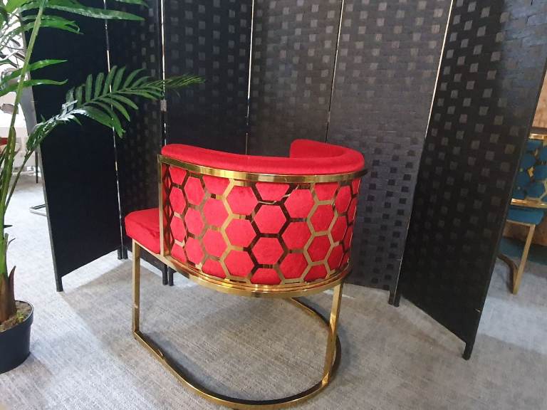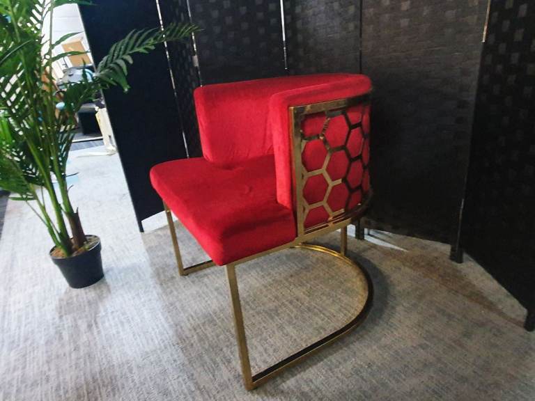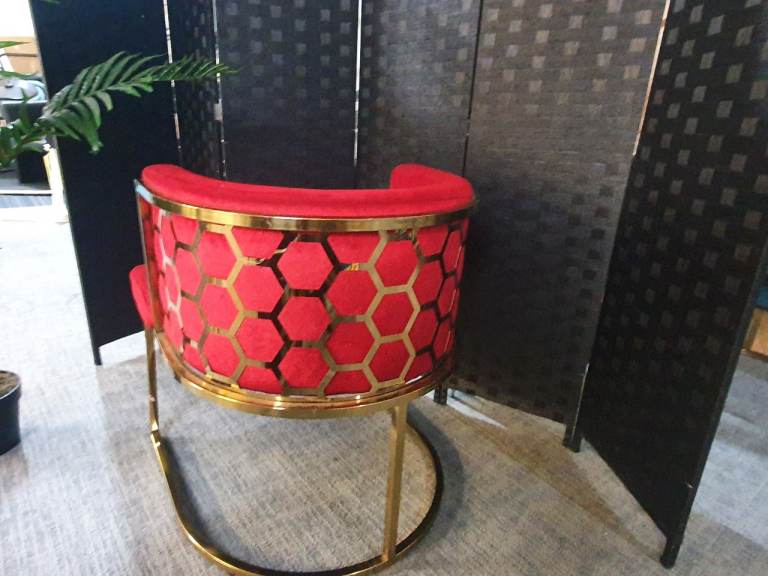 Quality Modern Upholstered Living Room Accent Red Chair Hotel Office Chair with Honeycomb Backing