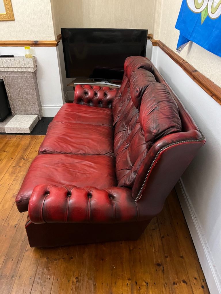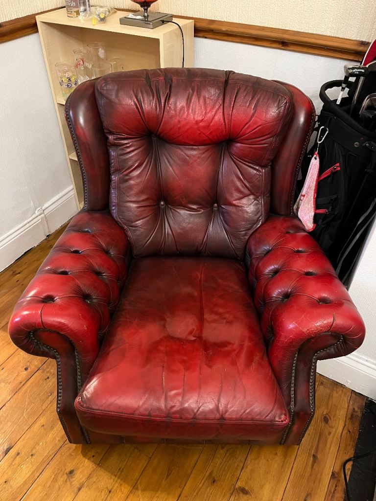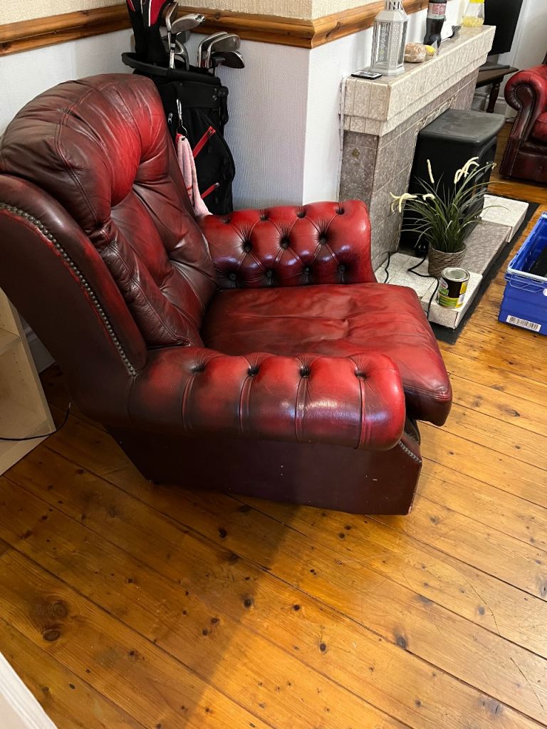 Queen Anne style leather armchair 87cm high , 95cm long and 100 wide good comfy condition - new sofa arriving so free to anyone who wants them. Sorry we can’t deliver