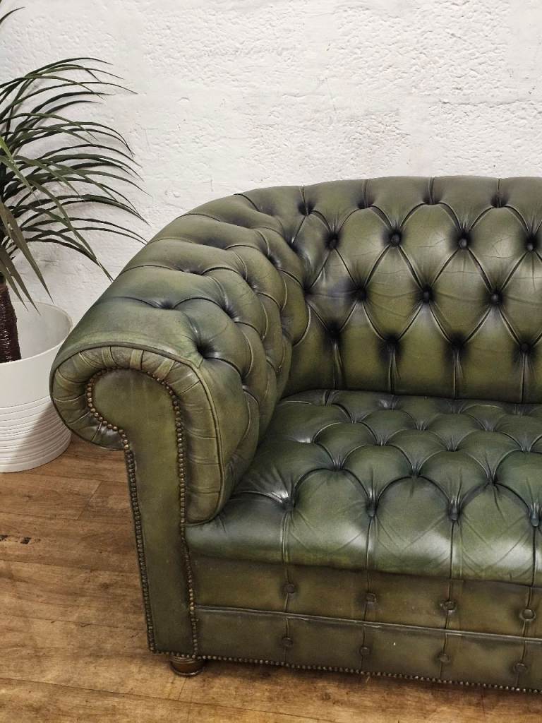 The leather on this is honestly remarkable for its age — supple, clean, and full of character, with a rich patina that gives it that unmistakable “proper Chesterfield” look. These are becoming very hard to come by in this level of condition and quality, especially in green.
