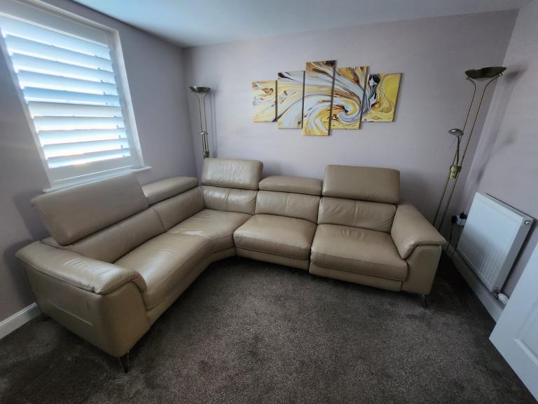 This Leather Recliner Sofa Set in beige colour is the perfect addition to any living room. The set includes a sofa with a length of 277 cm and a height of 70 cm, made with a metal frame and upholstered in leather fabric. It is designed for adults and comes with a manufacturer warranty of 1 year. Additionally, the care instructions recommend avoiding harsh chemicals to maintain the quality of the upholstery. This stylish and comfortable sofa set is sure to provide a relaxing seating option for any home.