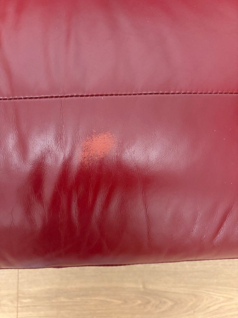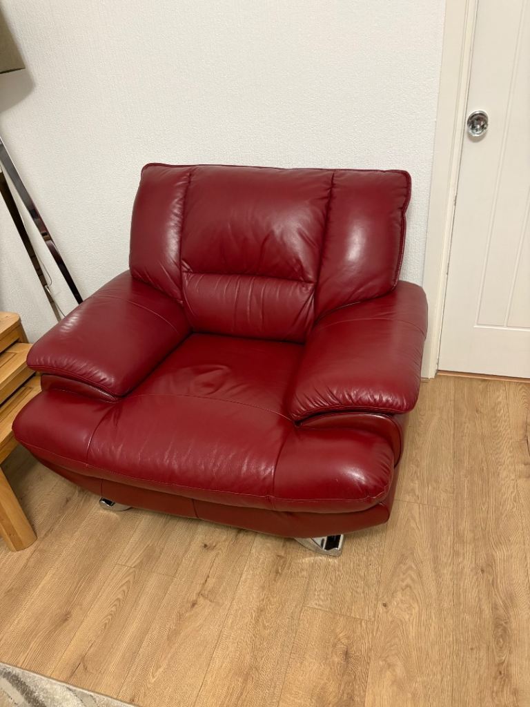 Red leather sofa & armchair, slight mark on sofa as sown in photo, otherwise great condition. Collection from Westfield Cumbernauld G68 9LG