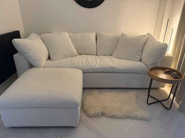 Purchased from RH Gallery at a cost of over £12,000. Otherwise known as the cloud sofa! Deep, pillow back sofa, with matching ottoman