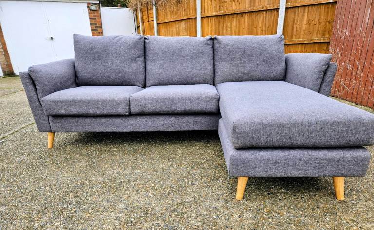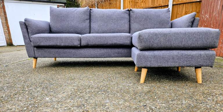 ROKOKO Grey L Shape Corner Sofa w/ Reversable Footstool DELIVERY AVAILABLE!