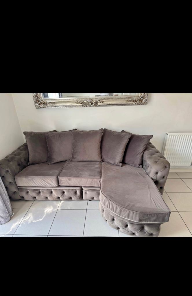 Posting for under a monthSanta Fe XL Charcoal Fabric 4 Seater Sofa with Footstool, excellent condition, like new