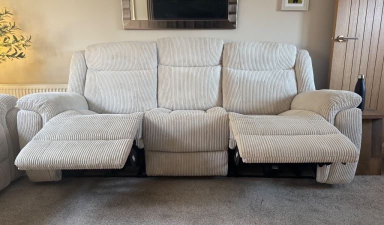 We are selling this virtually new SCS Elland power recliner sofa set.