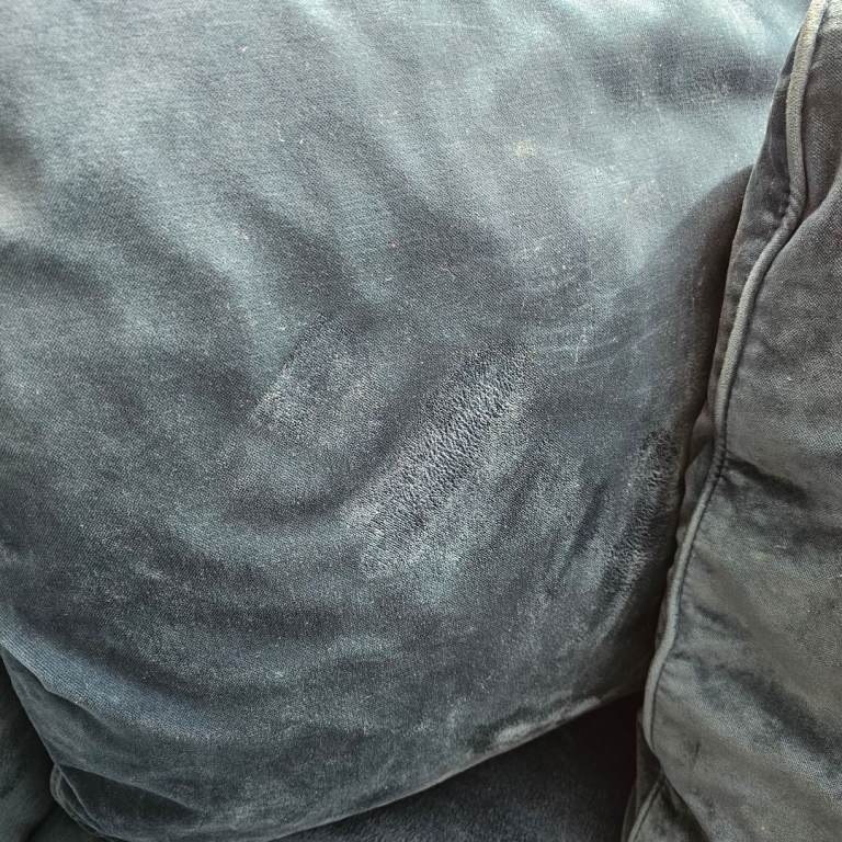 There are some stains on sofa and pillows I tried to take a picture of but you cant really see them. We've had these for 3 years and now need one smaller one instead. They are really comfy.