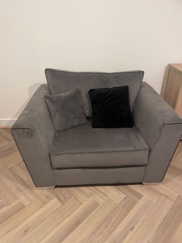 Grey velour snuggle chair from wayfair.