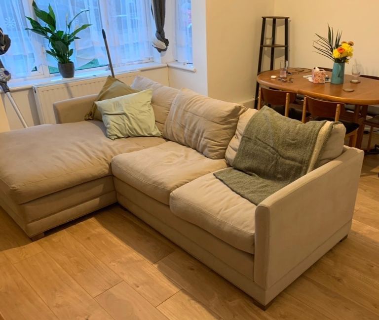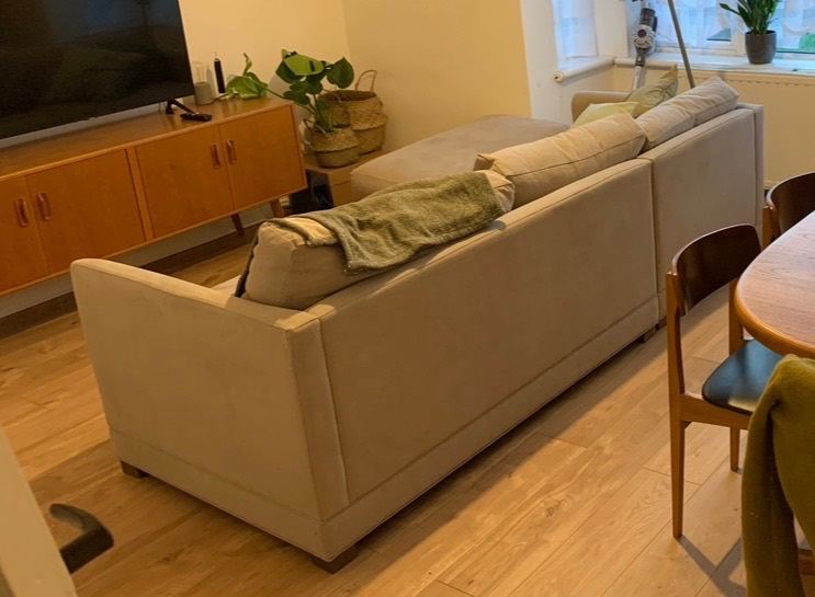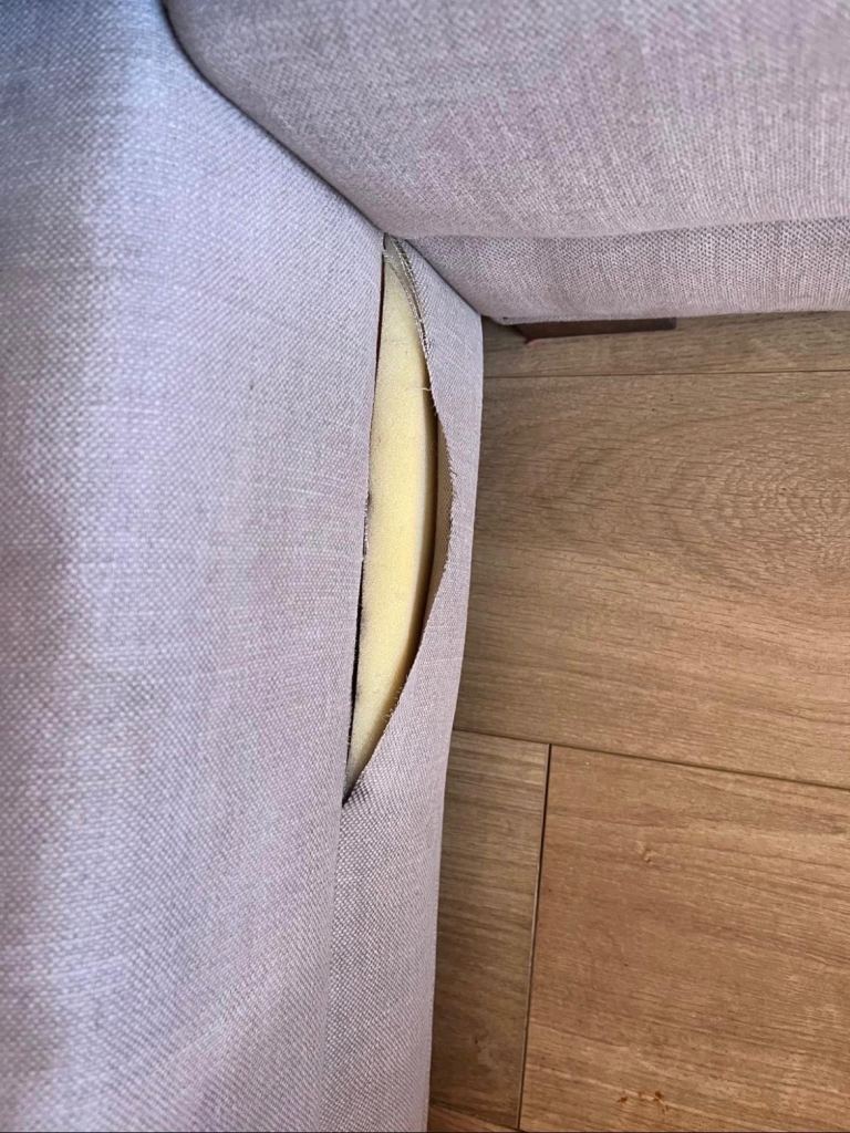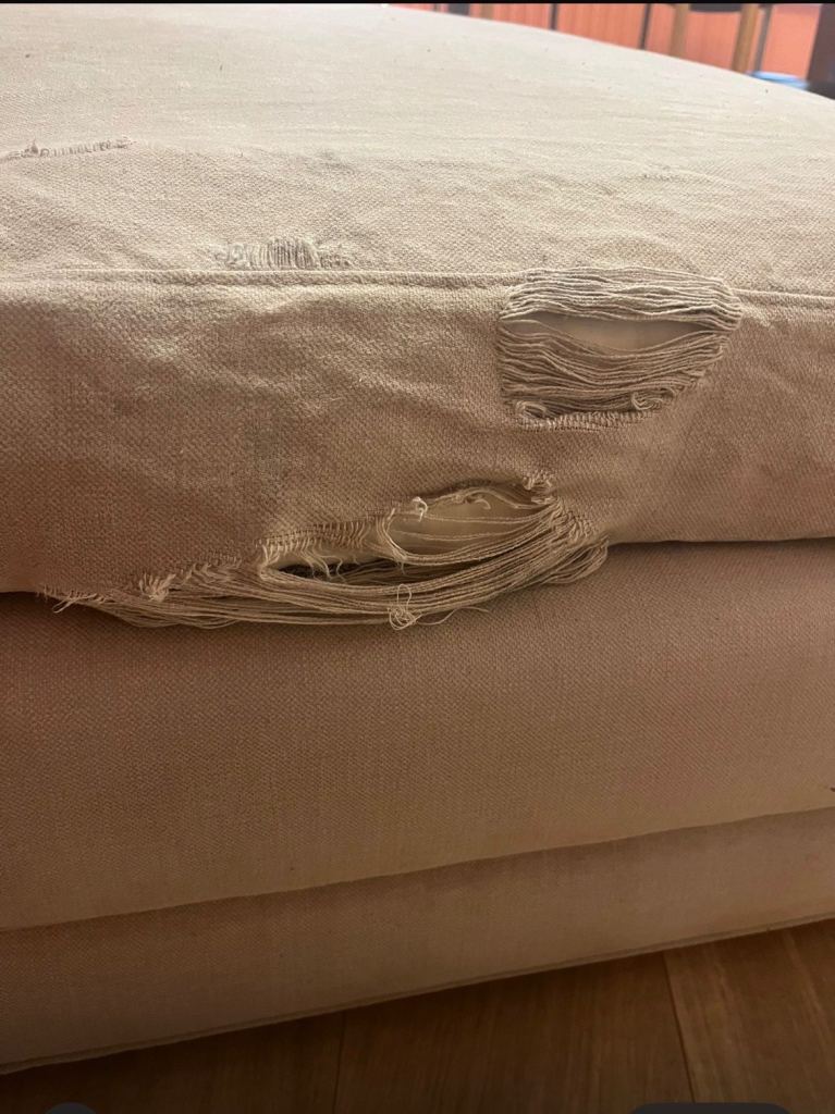 Tear on 2 cushion covers (caused by washing machine damage). The tears would not be visible if the sofa is against a wall.