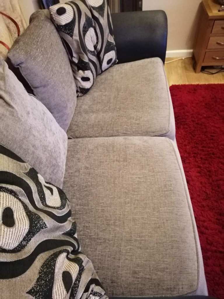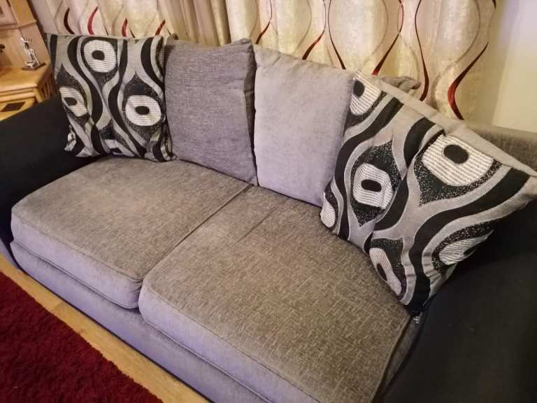 in very good condition 6yrs old, selling as want corner sofa, its grey and black the cream covers i bought to match decor ,they can come with it , they go on better than the pic thats a rush job, collection only from Hethersett need fast sale so open to proper offers