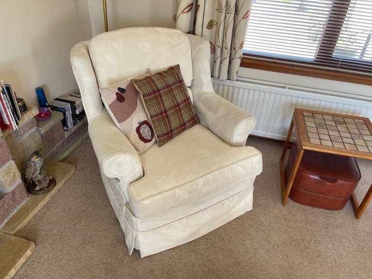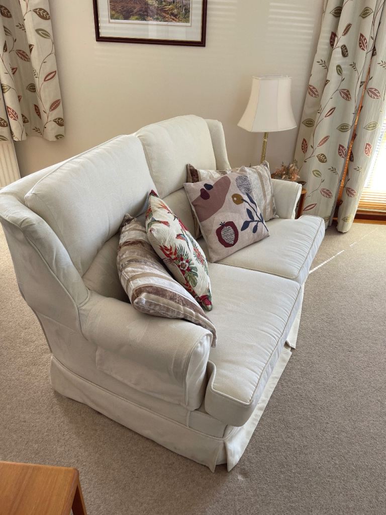 2 seater sofa and single chair, cream covers which I think are removable for cleaning.