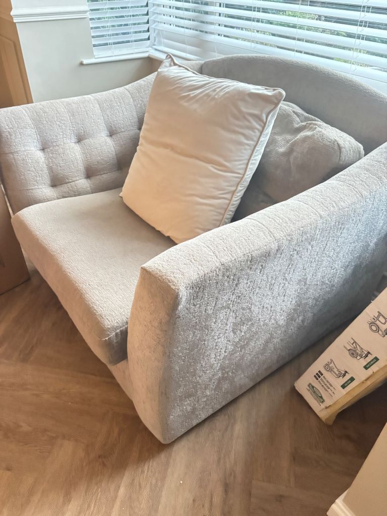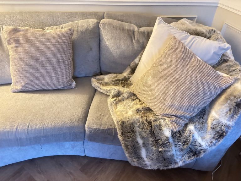 🛋 Large Curved 6 Seater Sofa + Matching Love Seat – Light Grey