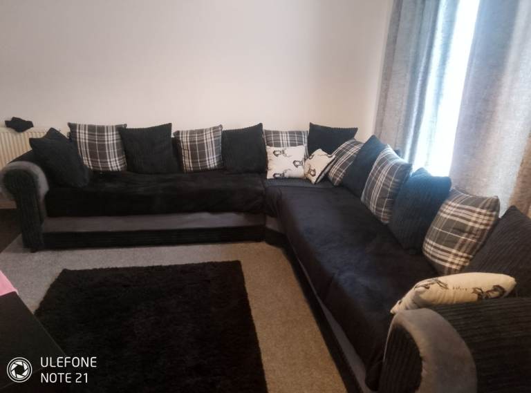 Black and Grey Fabric Couch with Pull Out Double Sofa Bed