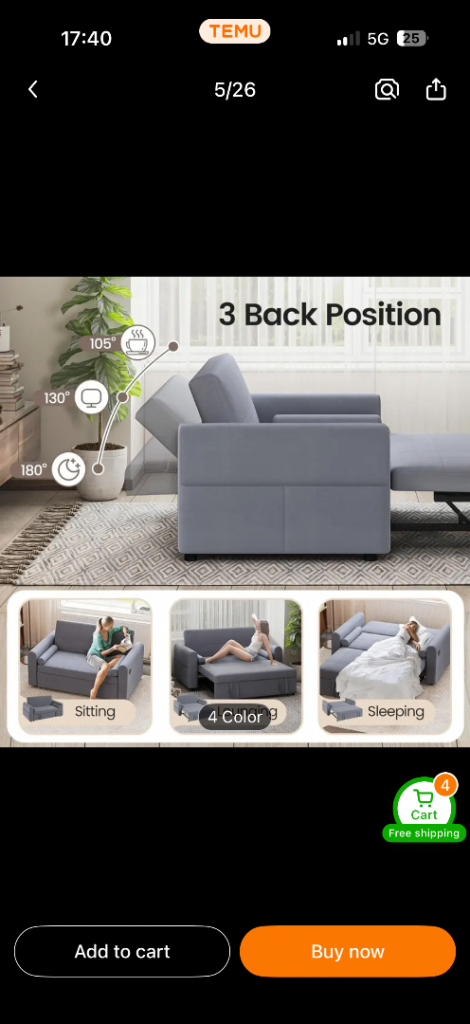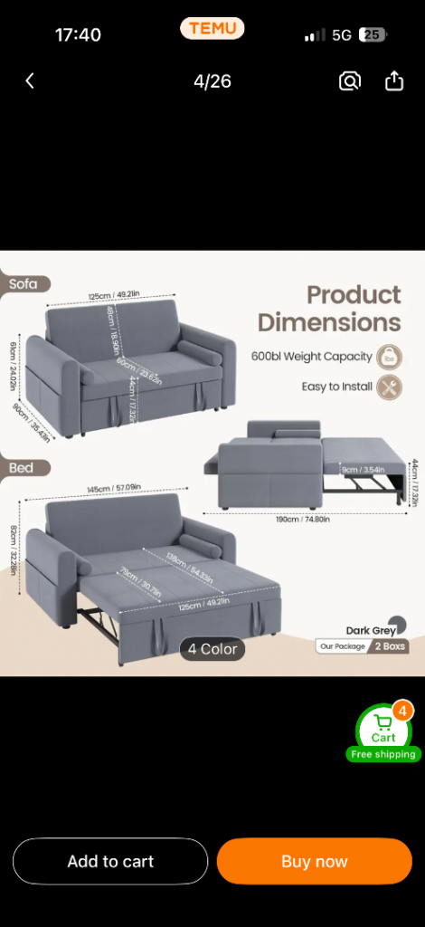 Easily converts from a sofa into a bed — ideal for small flats, guest rooms, or studios.