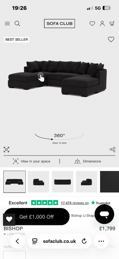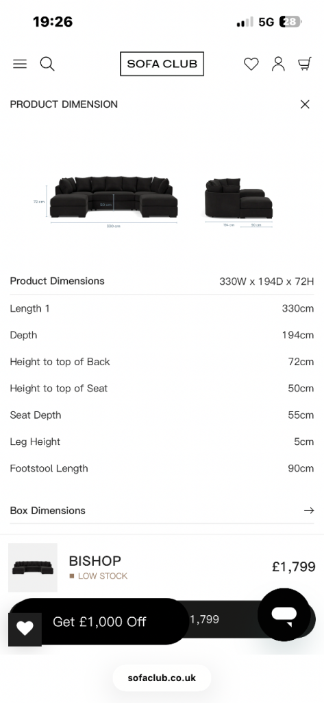 Lovely SOFA CLUB BISHOP U-shape sofa available.