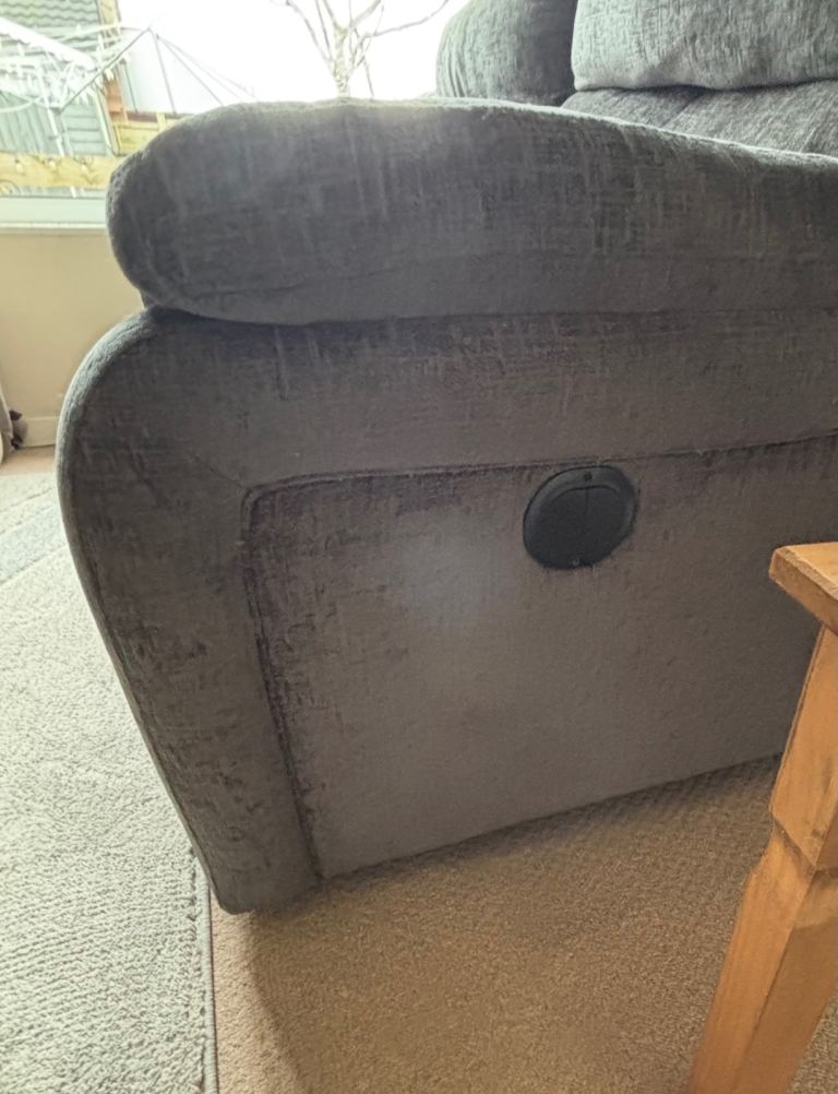 Two sofas for sale, £150 for the pair. Electric recliners. Needs a bit of TLC as some stitching coming away on the two seater. Some thinning of the material in places and fading, see photos. Reclining mechanism works absolutely fine. Sofas come apart for transport. Buyer will need to collect. Need to be gone by 10th March.