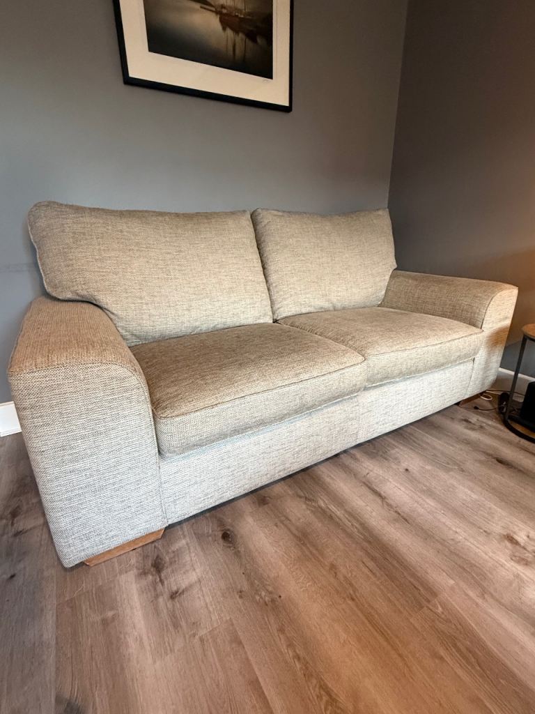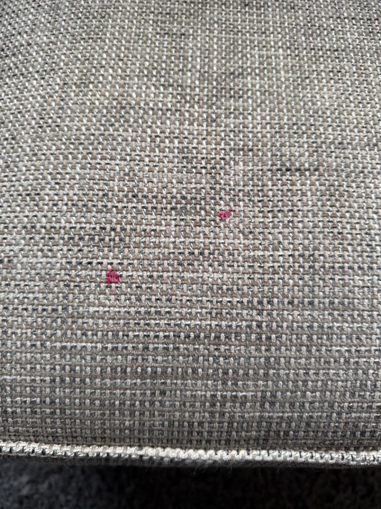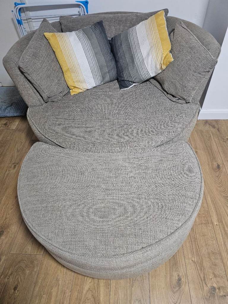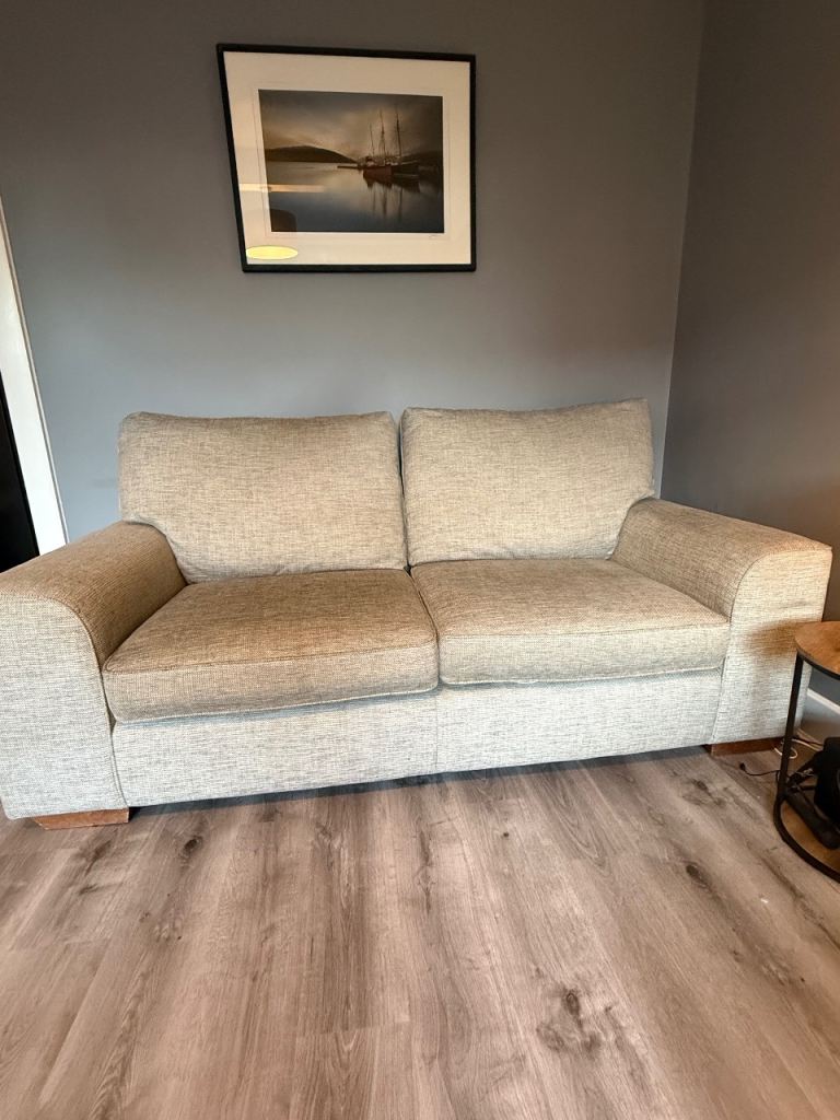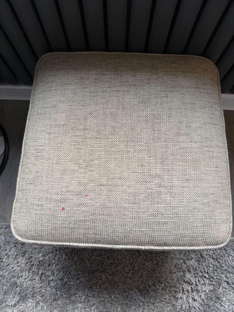 Perfect condition apart from tiny marks on the footstool. Always been covered with throws. Collect milngavie, can’t deliver sorry.