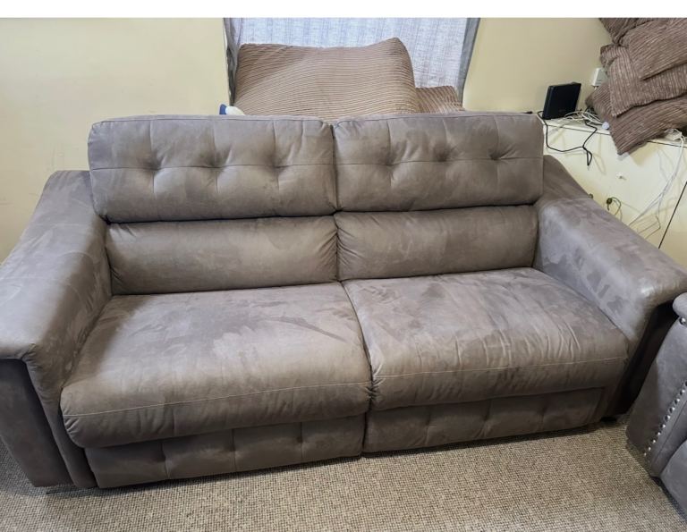 Bought this sofa as you can see in pictures. immaculate condition, three seater , two seater and foot stool bonus, i paid lot of money for it but selling it for 900. Anyone interested please txt me, you have to pick it up, no delivery and money on collection.