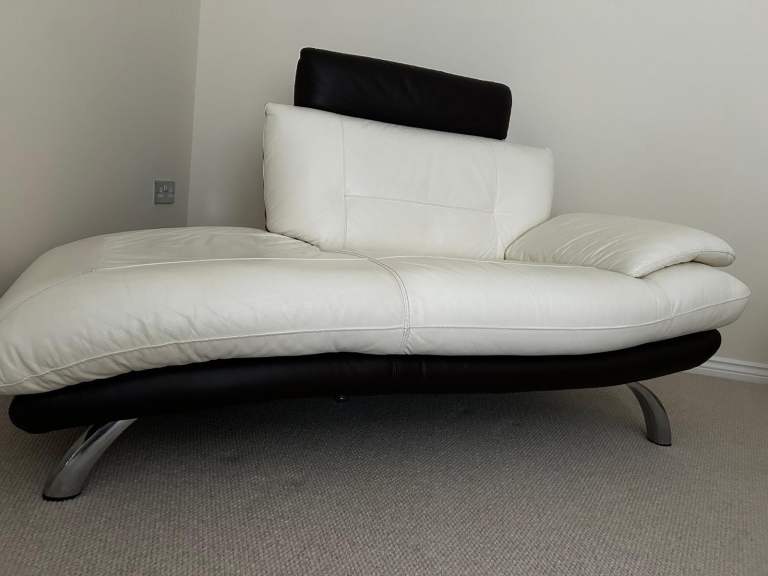 Leather Chaise Longue Sofa - cream with dark brown headrest.