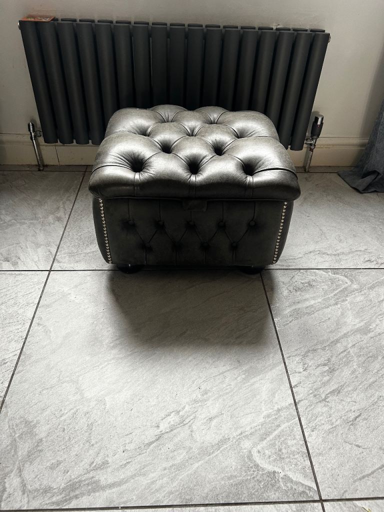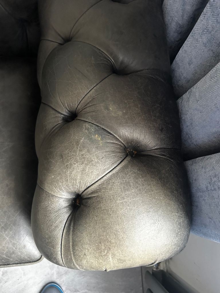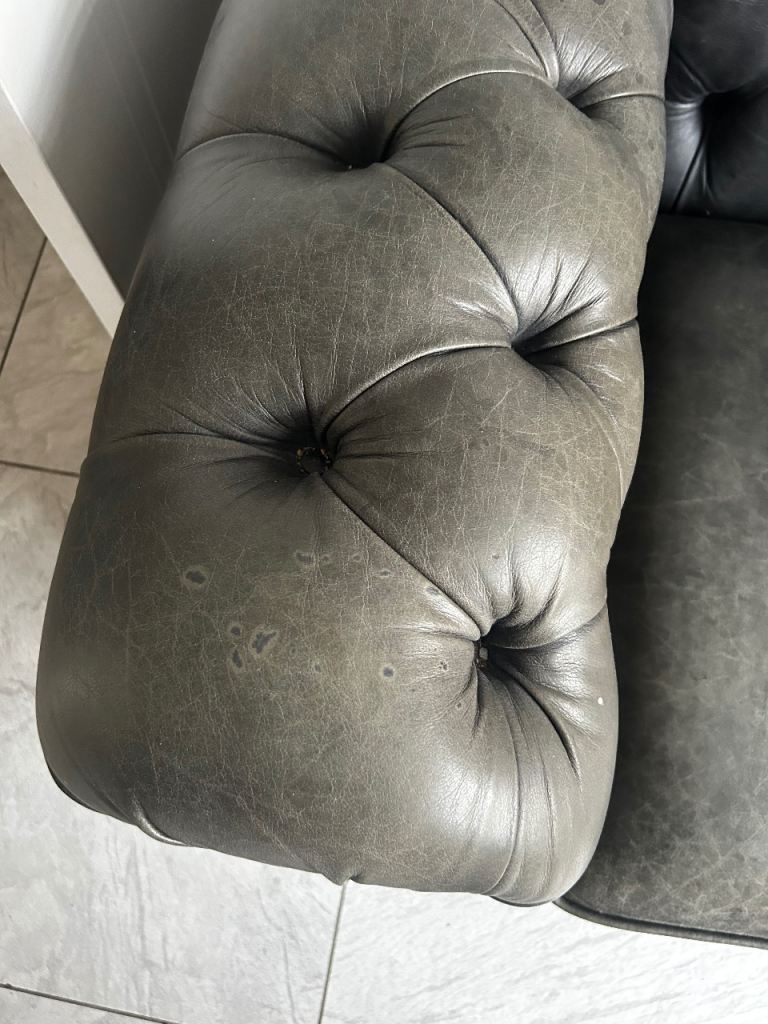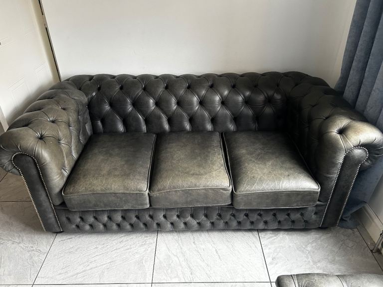 Timless chesterfield leather sofa, cuddle chair and footstool