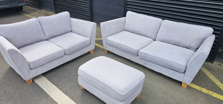 Sofa 2 seater 3 seater and footstool in very good condition no stains or tears sofas was professionally washed 3 days ago its like new from a pet and smoke-free home collection or delivery available