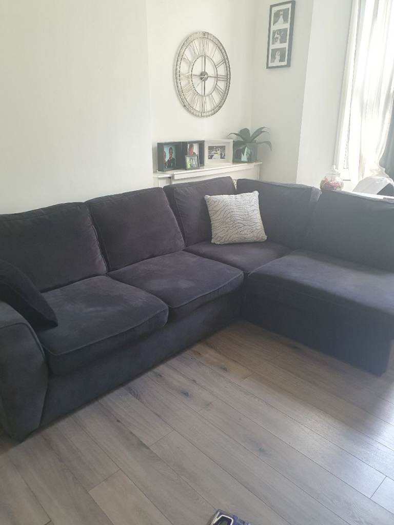 In good condition had it 18months. **please notes one of the coushions zip is broken but its doesn't show or affects use, Measuremet are on the photos, Charcoal grey colour. The sofa can disconnected in two parts for easy transportation Collection cr2 south Croydon