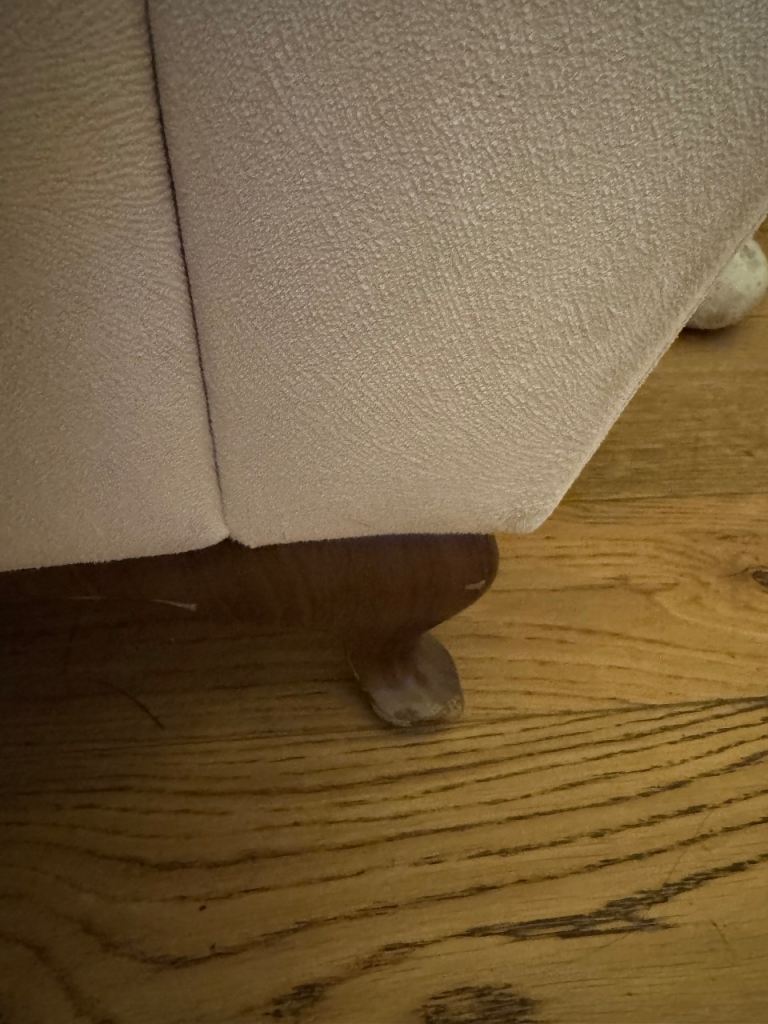 Has a few scuffs on the leg as can be seen in the photo and one of the buttons are missing as also seen in the photo