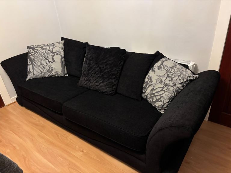 Black sofa in very good condition, hardly used as was in my spare room. All covers are removable so able to wash them. They have just been washed so I can sell. Buyer must collect, arms are removable to make it easier to manoeuvre.