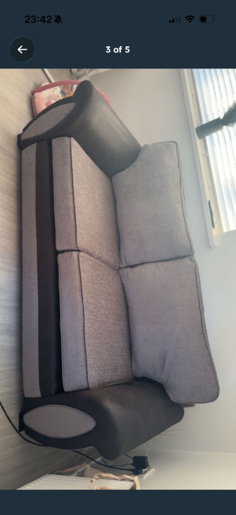 X2 3seater sofas black and grey material with black legs great condition from pet/smoke free home need gone by 22nd feb £200ovno can deliver for fuel