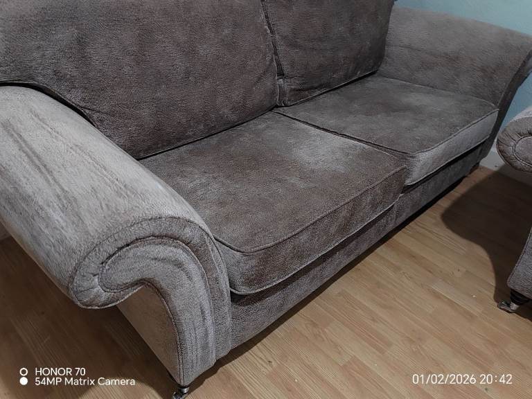 Beautiful 2-seater and 3-seater sofas in excellent condition, upholstered in a chenille velvety fabric that looks even better in person (photos really don’t do them justice).