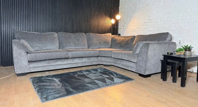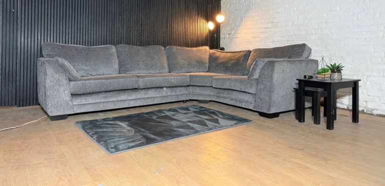 Excellent Condition – Clean, modern grey fabric with a deep, comfortable sit and supportive cushions. A very large family-sized corner that fills a room nicely and suits both modern and neutral interiors.
