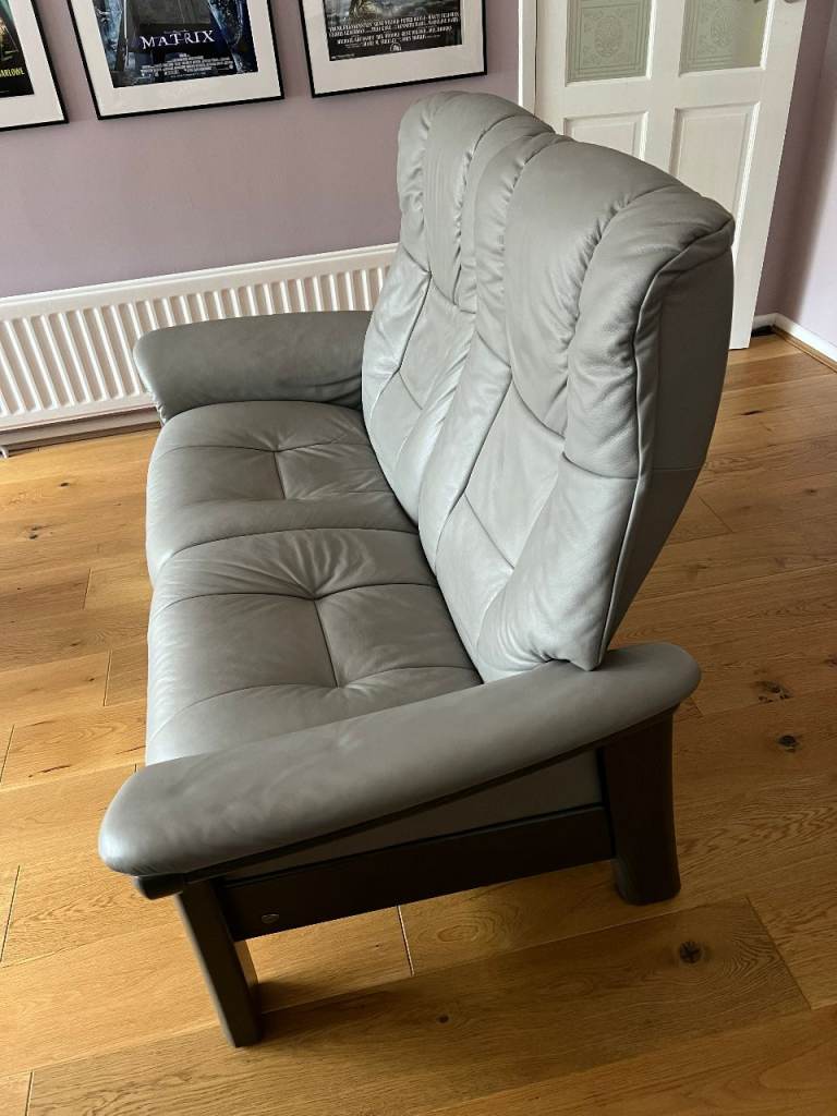 Posting for under a monthStressless 2 Seat Reclining Sofa - Grey Leather - Very Good Condition