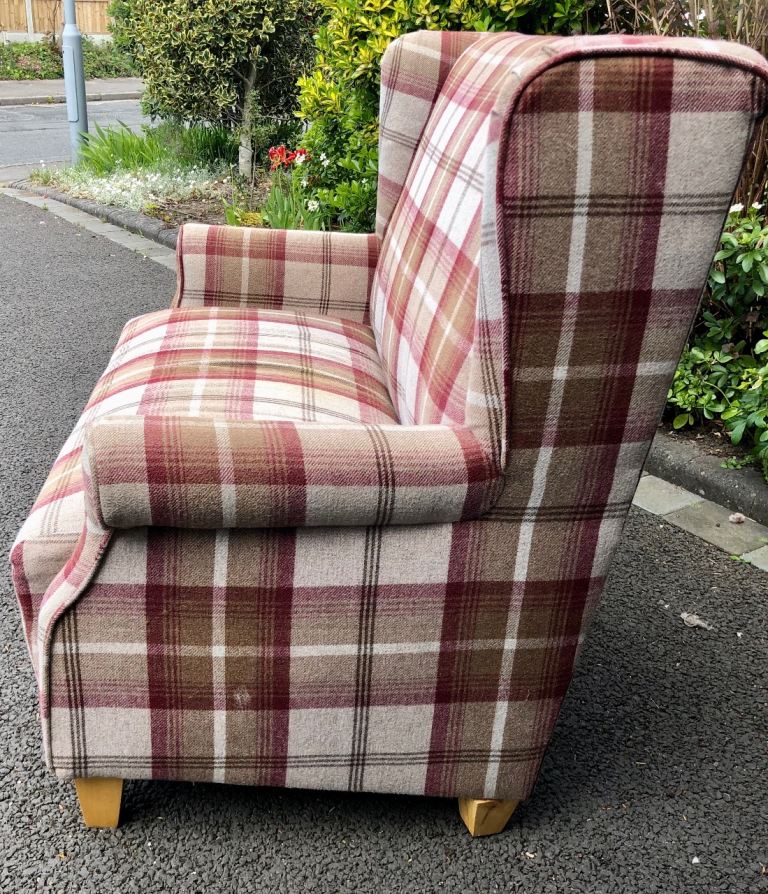 Compact tartan sofa, perfect in a spare room or conservatory as there are one or two marks, nothing glaringly obvious though.