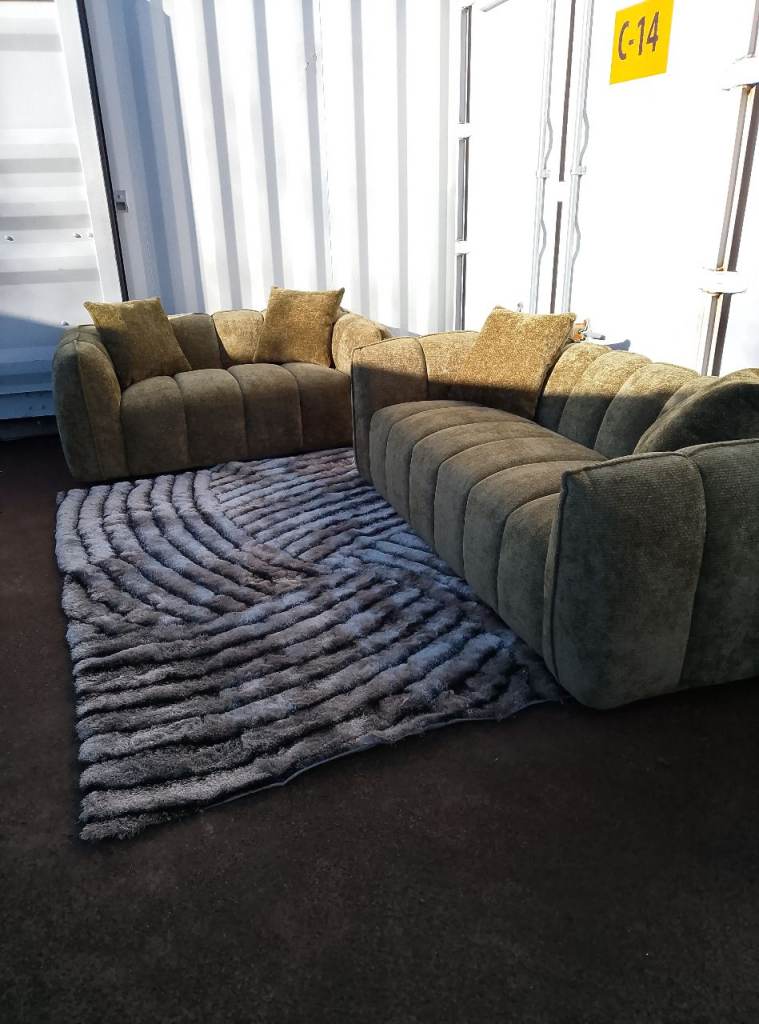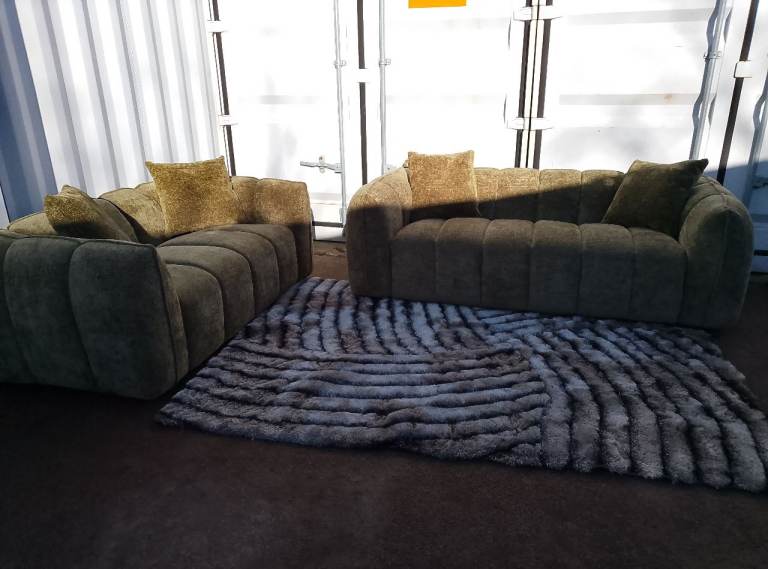 Stunning set of sofas done in a beutifull green fabrick viewing welcome delivery available