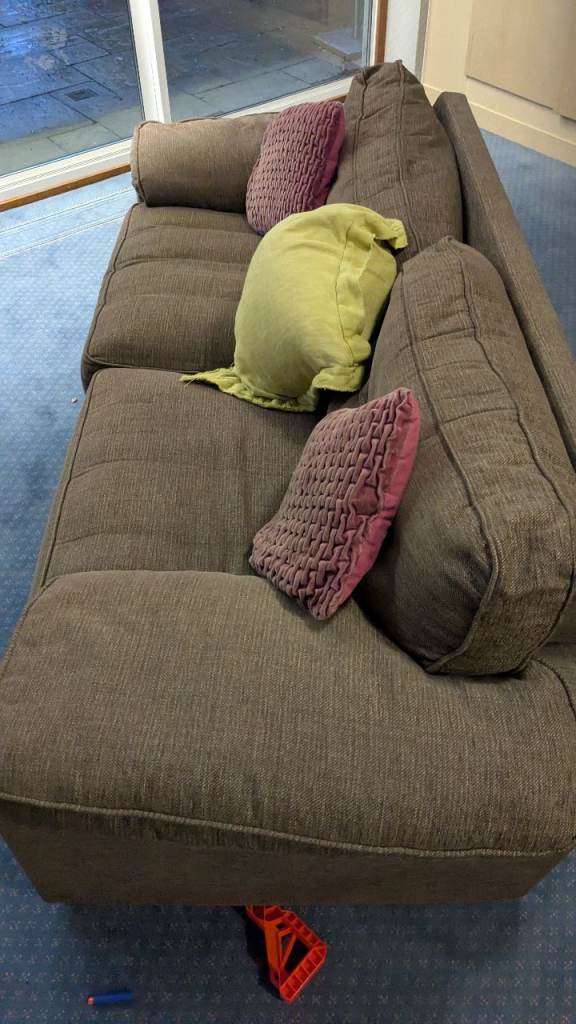Lovely fabric sofa, seats 3 comfortably, perfect for a living room.