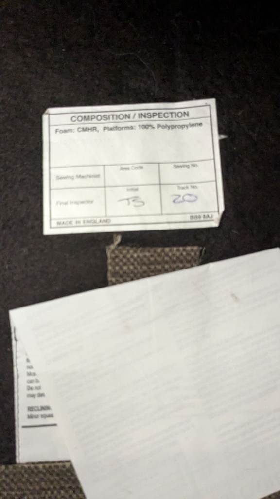 The upholstery is in good condition with minor signs of use, no major stains or tears.