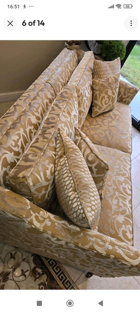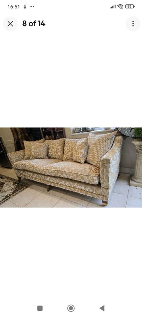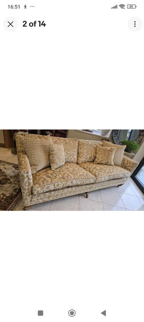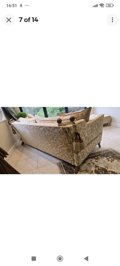 The fabric is a real statement piece. The sofa have arms each end which you can adjust to your liking and they can be folded down to create daybed.