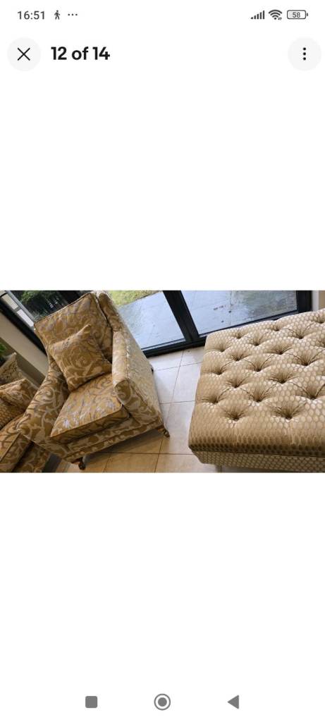 Top of the range Duresta trafalgar model drop arm knoll sofa, armchair and footstool