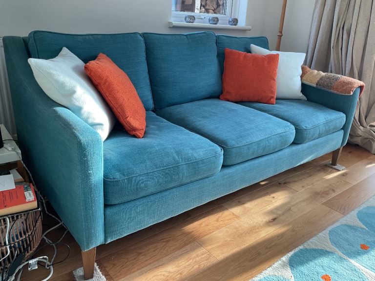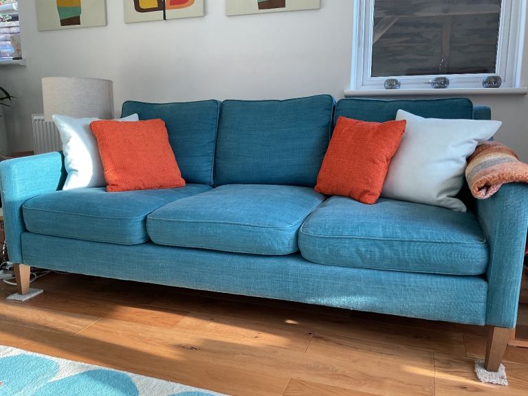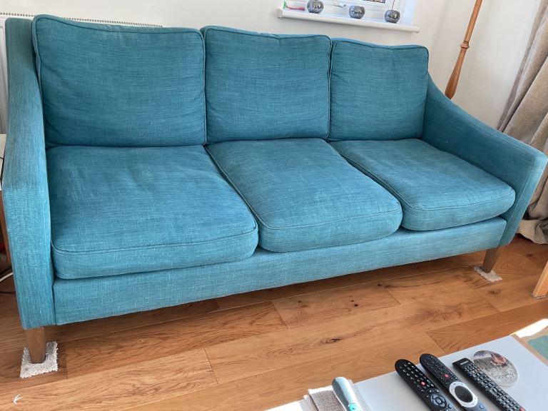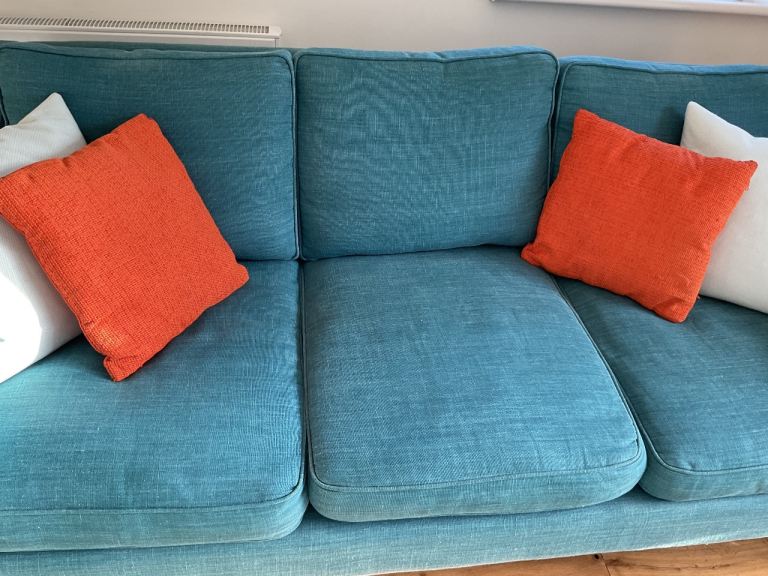 Posting for 13+ yearsTWO 3 Seater IGGY Sofas from in 100% Teal Linen