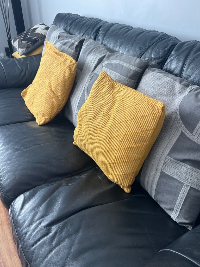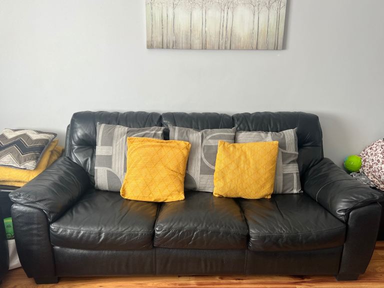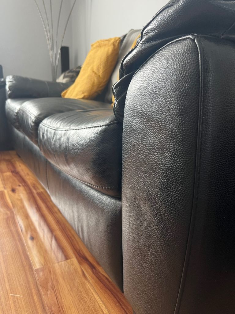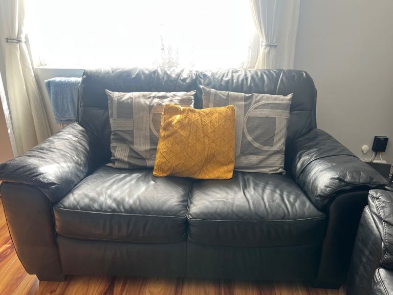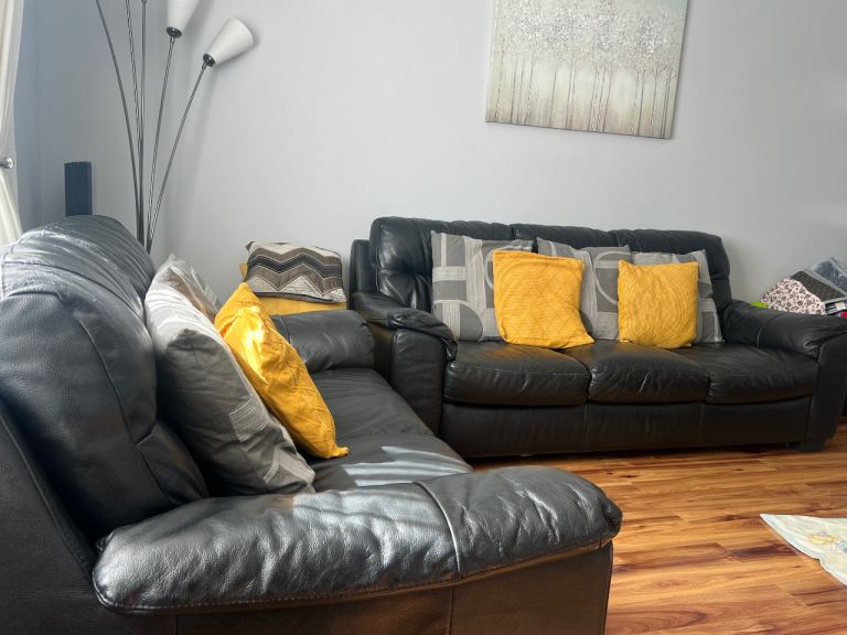 Posting for 2+ yearsTwo Black Leather DFS Sofas
