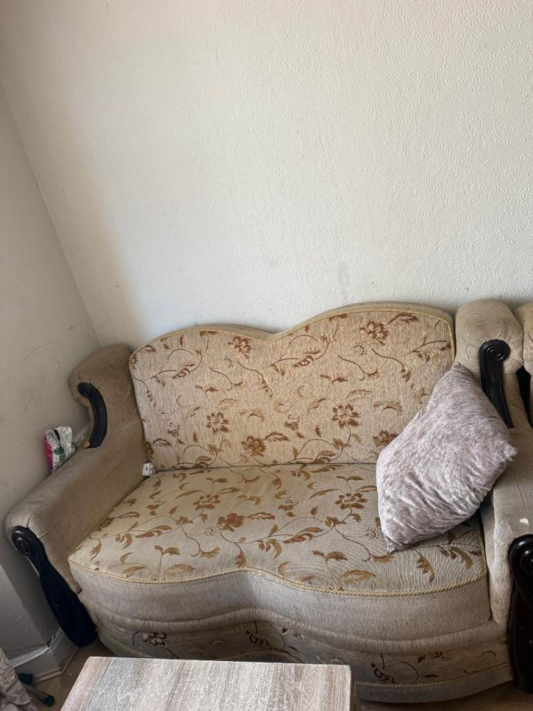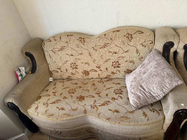 Two handmade sofas: a 2-seater, and a single chair. Both are vintage but in solid, good condition.